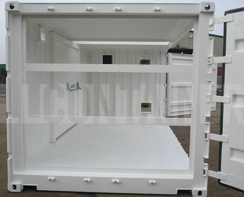 We have converted many ISO containers to house water treatment and reverse osmosis systems. Lined and insulated with suitable materials the flooring overlaid we can work to client drawings and specifications to include additional pipe and cable apertures and ducting, lighting, personnel and emergency exit doors, gantry cranes and fire ratings.