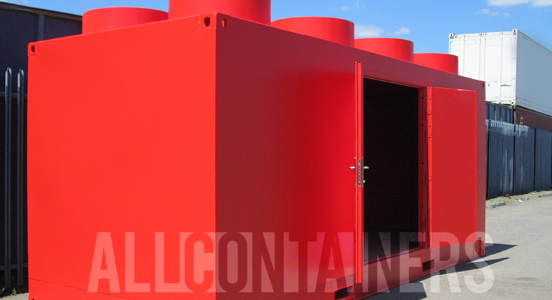We converted a 20ft container into a giant lego brick to house their “Imagination Factory” The containers had bi-folding steel doors, flat panels welded to sides, giant lego sockets on the roof and was sprayed in clients colours.